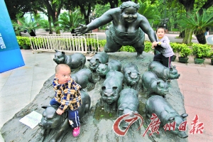 (许鸿飞的胖女人雕塑小孩子也很喜欢。)