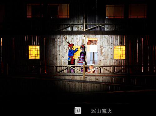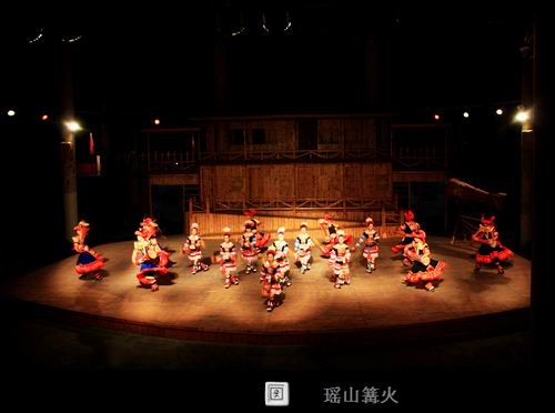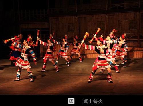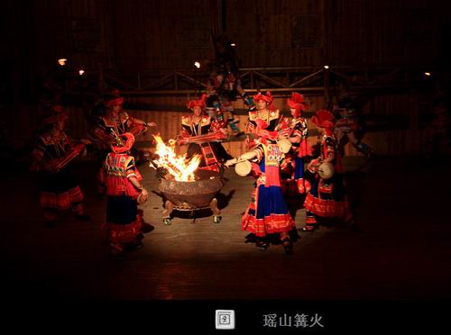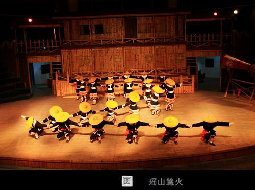 连南瑶山篝火晚会是具有浓郁的瑶族“味道”的民间歌舞表演。如:瑶族舞曲、瑶山的故事、八排刀韵、讴莎腰、阿贵斗牛、长鼓舞、耍歌堂、歌堂优嗨歌等十多个节目,整个晚会不但令游客赏心悦目,而且还让游客参与节目。如:参与穿戴瑶族服饰的娱乐比赛及找新娘项目,并与阿贵及莎腰妹(阿妹)一起跳竹杆舞。除此之外,在晚会尾声之时还不忘给客人一段大家乐的时间——踩歌堂。多年来,整台歌舞表演节目由旧变新,由少变多。但不管是新节目还是旧节目都一样深受游客的青睐。而且由始至终都让游客在笑声及惊叹声中度过。