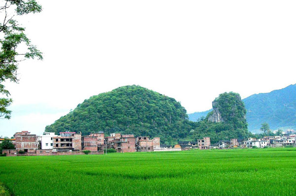 位于县城东北面,从西面望之似伏兔,从东北面看之似猫公,故由称“猫公山”。它是一座天然石山,山下古榕参天,林荫蔽日;山上树木葱茏,四季如春,故得名“伏兔春萌”。山中还有多个岩洞。20世纪60年代初,省考古专家在石洞中挖掘和采集了不少新石器时代的石刀、石锛、石镞和夹砂粗陶等文物。抗日战争时期,广东省国民政府机关曾搬迁到此达4年之久,当时的省长吴铁城在石壁上写下“义愤难容”4个大字。此遗迹遗物被县人民政府列为“县重点文物古迹保护单位”。“伏兔春萌”还是避暑的好去处。登上山顶,凉风习习,花香阵阵,非常清静幽雅。远眺,瑶山云雾缭绕,万峰竞秀;近看,县城高楼林立,树绿花红,生机盎然。登山者不无被这美丽的景色所陶醉。现在,此景点已开辟为公园。
