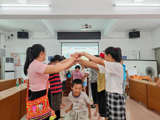 在暖场课上。老师通过组织“抓泥鳅”的破冰游戏拉近孩子们的距离,带领孩子们一起制定小组锲约,在叶子形状的卡片写下期望,并粘贴在“期望树”上。