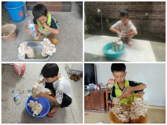 在观察蘑菇成长的课上。将种植和观察过程通过绘画记录与拍摄相片制作成蘑菇成长手册和蘑菇成长记,进一步激发了学生对自然世界的好奇心和对自然生命的尊重,培养学生的动手实践能力、责任感和探索意识。