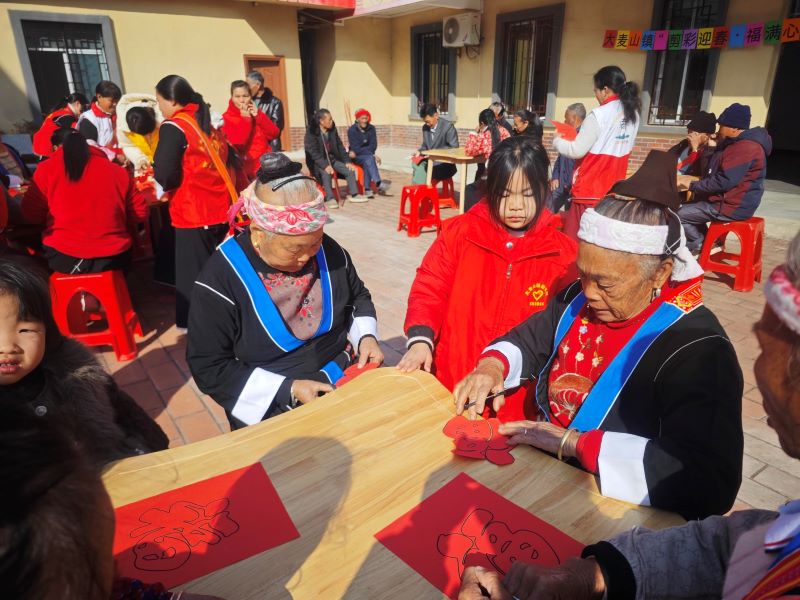 2025年1月17日上午,一场充满欢乐与温情的新春活动在大麦山镇热闹上演。此次“剪彩迎春·福满心间”活动由县乐瑶社会工作服务中心牵头,联合新寨村志愿者以及镇养老服务中心共同举办 ,吸引了众多老人热情参与。