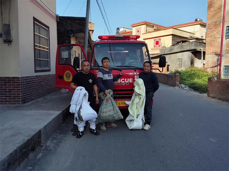 2025年12月19日下午,镇消防站接到任务后,应急办工作人员(镇兼职消防员)一车三人立即赶往现场,配合村干部先疏散了围观群众,观察了黄蜂窝的大小之后,穿上防护服,手拿工具和麻袋,经过一个多小时的奋战,黄蜂窝被成功摘除,并对残余的黄蜂进行消杀,隐患清除后,村民表示非常感谢。