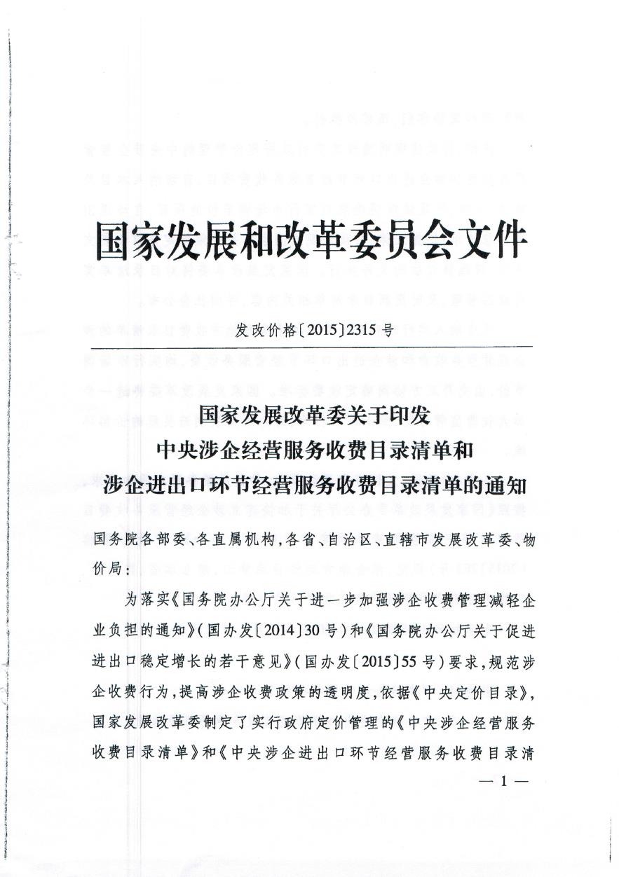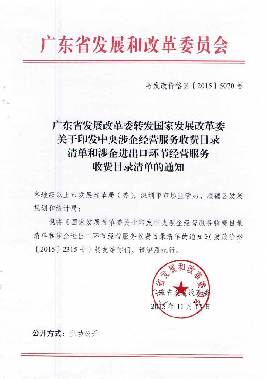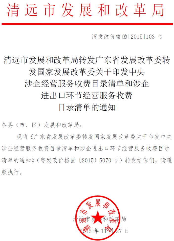 清远市发展和改革局转发广东省发展改革委转发国家发展改革委关于印发中央涉企经营服务收费目录清单和涉企进出口环节经营服务收费目录清单的通知