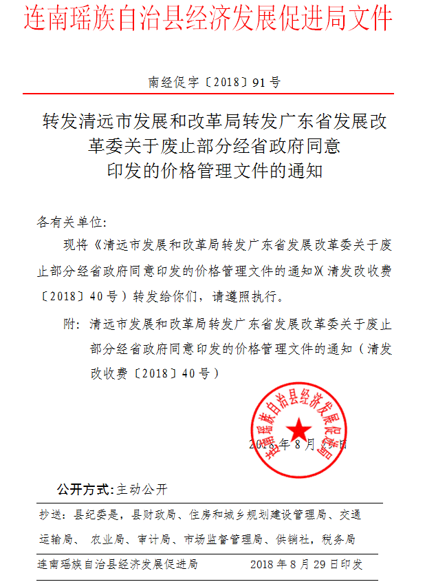 附件:清远市发展和改革局转发广东省发展改革委关于废止部分经省政府同意印发的价格管理文件的通知.wps