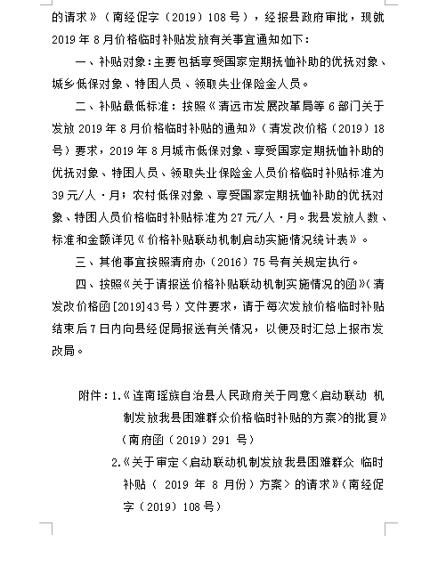附件:2.清远市发展改革局等6部门关于发放2019年8月价格临时补贴的通知