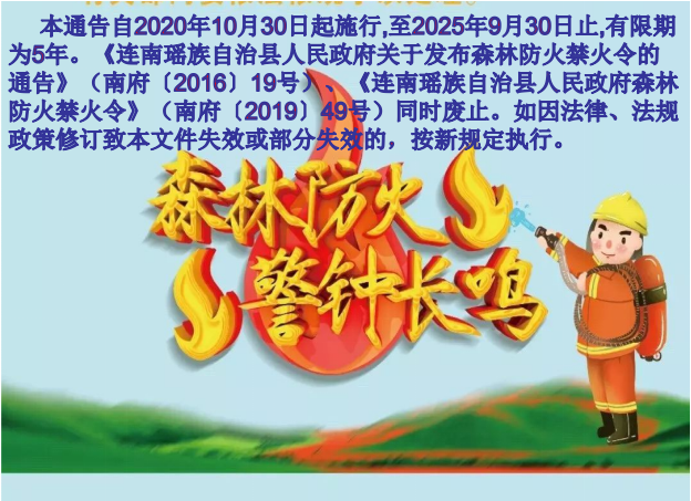 文字解读《连南瑶族自治县人民政府关于发布森林防火禁火令的通告》